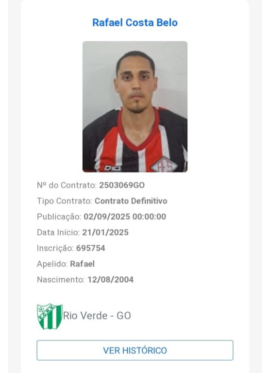 Foi divulgado no Boletim Informativo Diário (BID) da CBF, a informação de um contrato definido envolvendo o Esporte Clube Rio Verde.